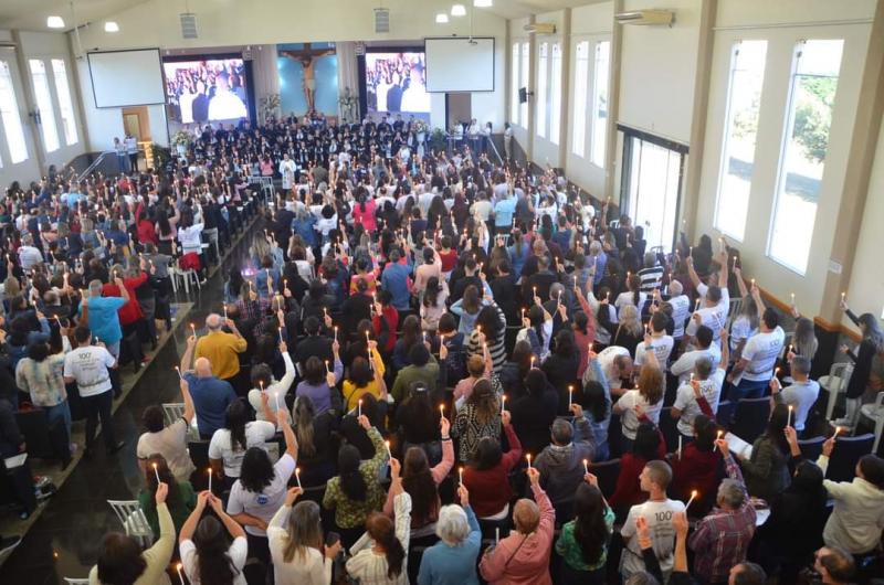 Aconteceu no sábado (28/08), no CEFAS em Apucarana, o Centésimo Curso de Canto Litúrgico e Pastoral da Diocese, com participação de 800 cantores das paróquias da região e outros lugares. O encontro celebrativo, foi ocasião propícia de recordar a rica história percorrida pela Igreja Apucaranense, no trabalho de animação litúrgica das comunidades. Estiveram presentes os antigos coordenadores diocesanos: Irmã Custódia Cardoso, Maestro Adenor Leonardo Terra e o casal Cris e Marcos da Matta; assim como os atuais Coordenadores: Camila e Fernando Ripolli. Receberam homenagens, também, os padres que assessoraram a pastoral: Mons. Roberto Carrara, Pe. José Roberto Rezende, Pe. Edson Zamiro, Pe. Valdecir Ferreira e o Pe. Anderson Bento, atual assessor. O encontro foi intenso, bem animado e teve encerramento com Missa Solene, presidida pelo Sr. Bispo, Dom Carlos José. Gratidão à equipe organizadora e a todos os cantores e instrumentistas de nossa Igreja!
