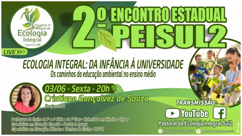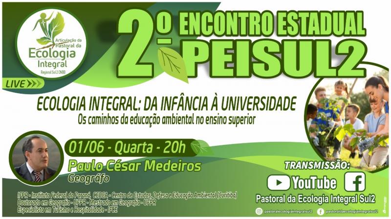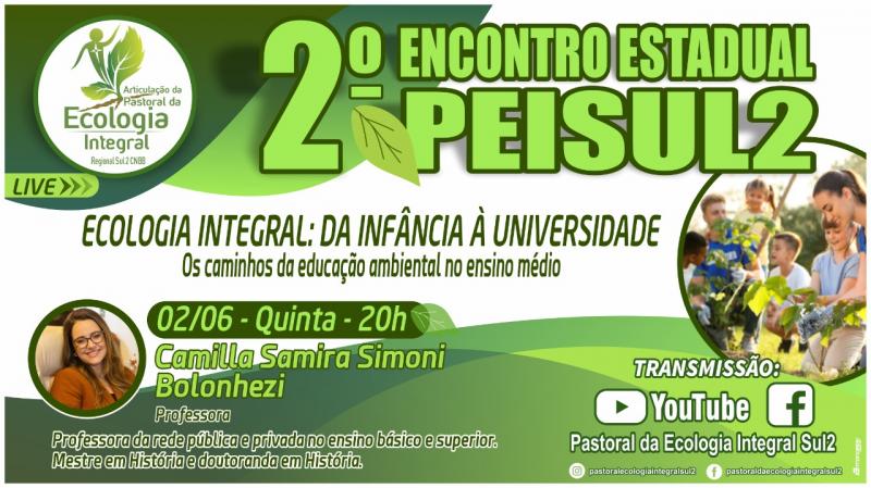 A Articulação da Pastoral da Ecologia Integral do Paraná, tem a satisfação de lhe convidar para participar ao vivo do 2º Encontro Estadual da PEISUL2 (Pastoral da Ecologia Integral do Regional Sul 2).