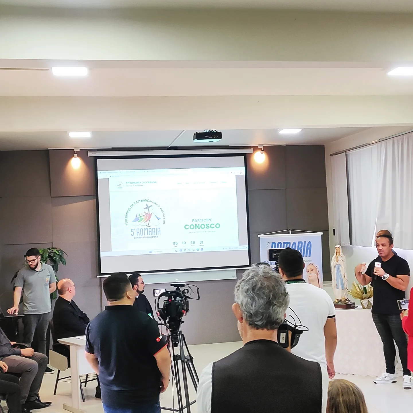 Na manhã de hoje, 01 de novembro, aconteceu no Auditório da Cúria diocesana, a coletiva de imprensa da 5ª Romaria Diocesana, que acontecerá no dia 04 de fevereiro de 2024, no Ginásio do Lagoão em Apucarana.