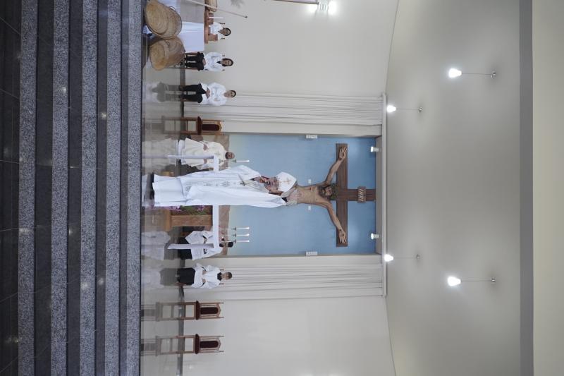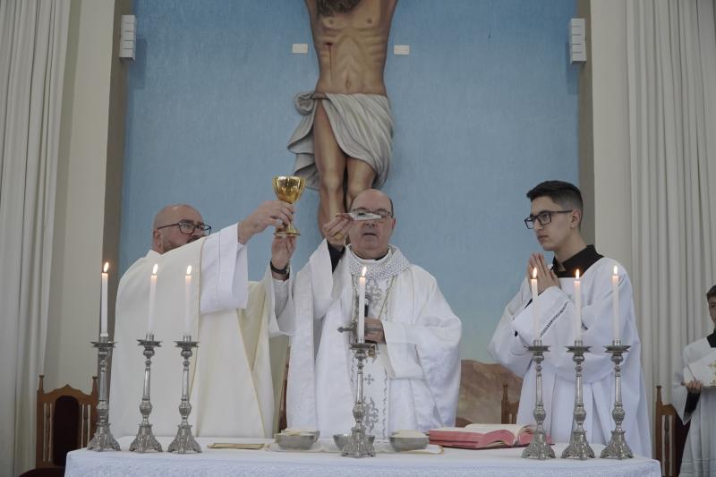 O encontro se iniciou com a santa missa presidida por Dom Carlos José e concelebrada pelo assessor diocesano da catequese, Pe. Leandro.