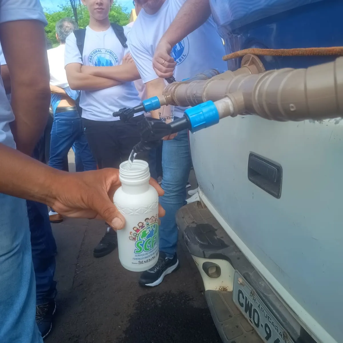 A Pastoral Familiar da Diocese de Apucarana esteve presente na 5ª Romaria Diocesana, empenhados na distribuição de água potável para os romeiros.