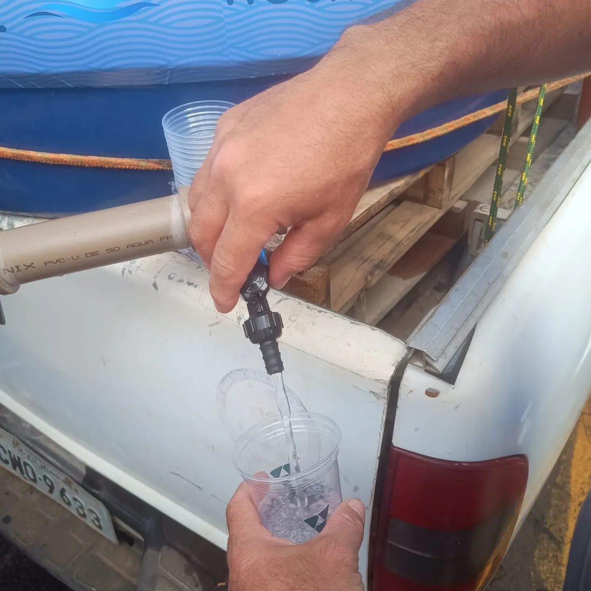 Foram 6 mil litros de água mais 400 garrafas.