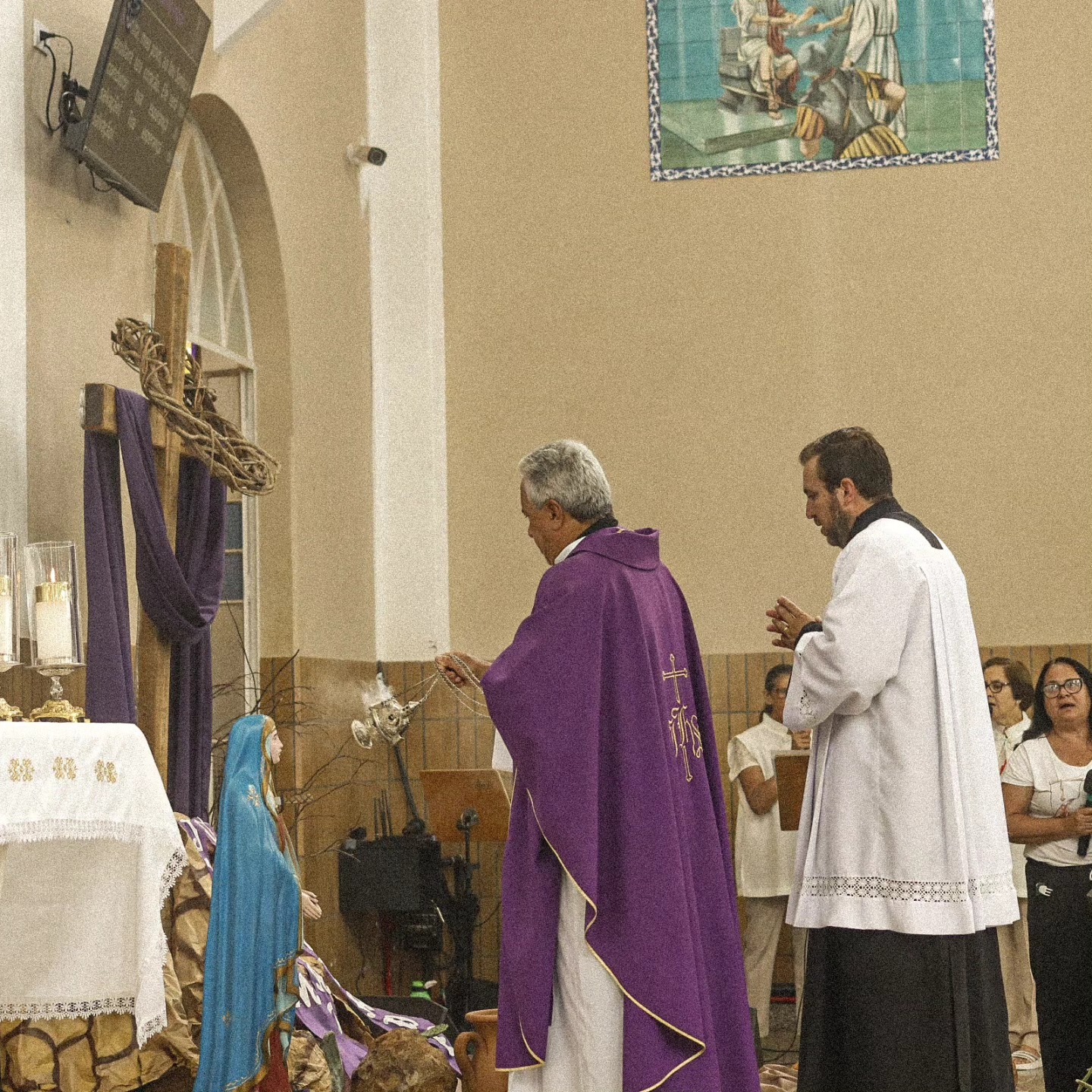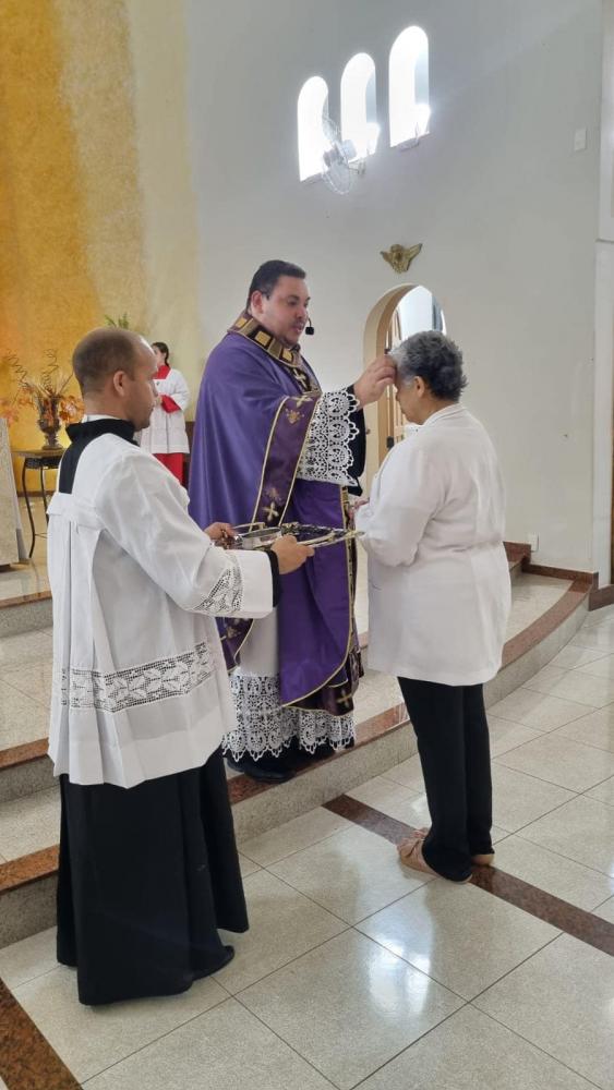 Nas missas, há um momento em que o padre e seus ministros abençoam cada um colocando um pouquinho de cinzas sobre a cabeça ou fazendo uma cruz na testa.