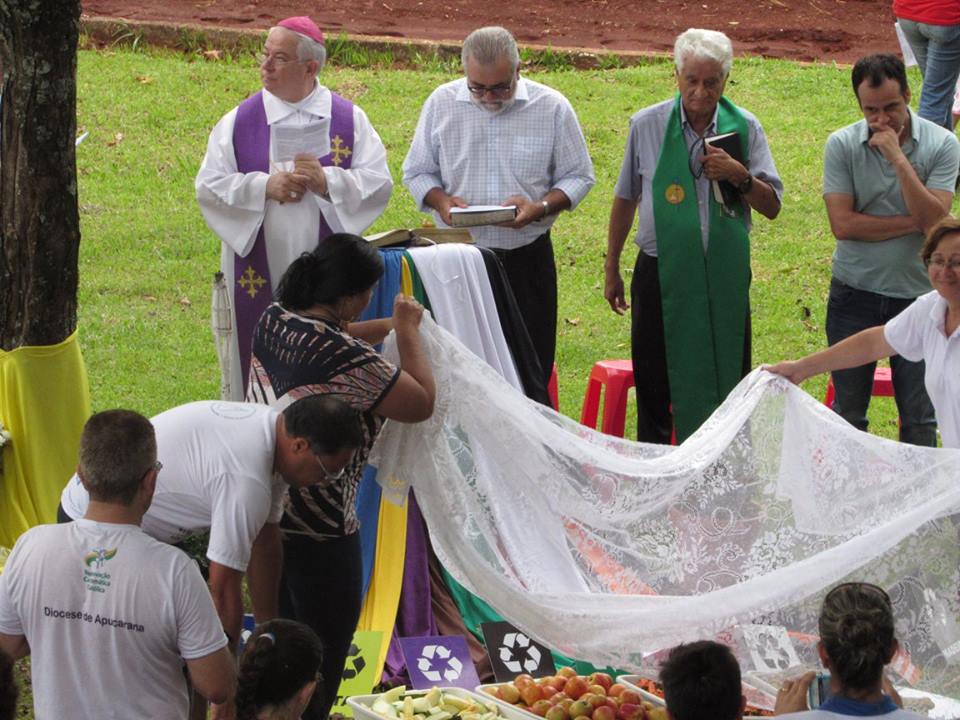 A Cáritas realizou na tarde deste domingo (14/02), no Parque Municipal Jaboti, cerimônia de abertura oficial da Campanha da Fraternidade Ecumênica 2016 na Diocese de Apucarana. Uma realização da Paróquia do Decanato de Apucarana, igrejas do Conselho Nacional de Igrejas Cristãs do Brasil (CONIC) e entidades ligadas ao meio ambiente, o evento ao ar livre reuniu cerca de 300 fiéis de diversas denominações religiosas. O prefeito Beto Preto foi representado pelo secretário de Governo, pastor Othoniel Gonçalves.