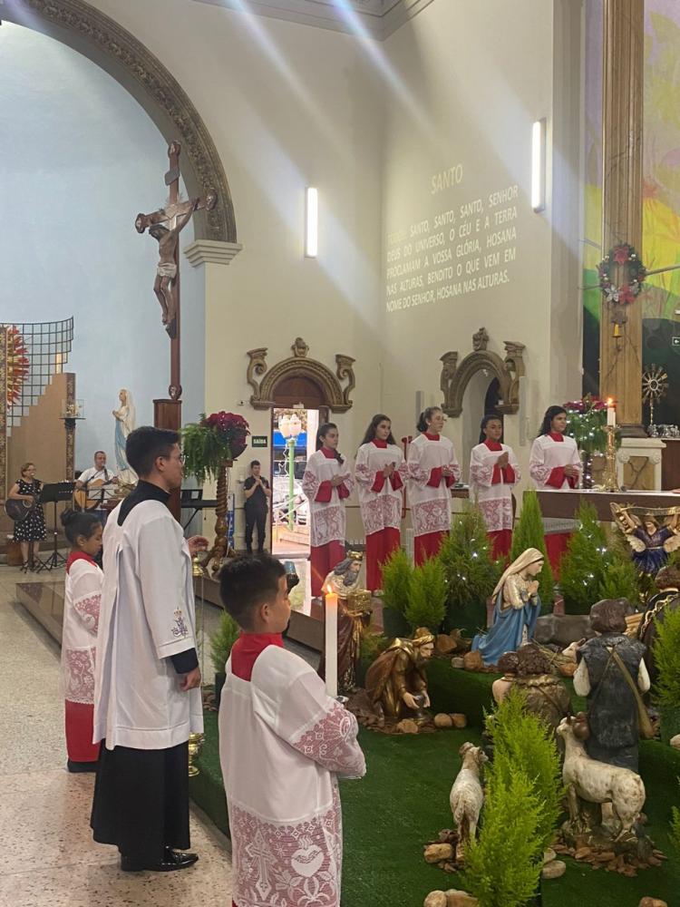 Aconteceu na Catedral Nossa Senhora de Lourdes, no último sábado, dia 10 de dezembro, na Missa das 18:00, com a presença do Cura da Catedral, Pe José Roberto Rezende que presidiu a Santa Missa, concelebrada pelo Pe Alessandro Ladeira, nosso Vigário Paroquial e Assessor da Pastoral dos Coroinhas, a Investidura de 12 novos Coroinhas.