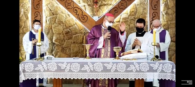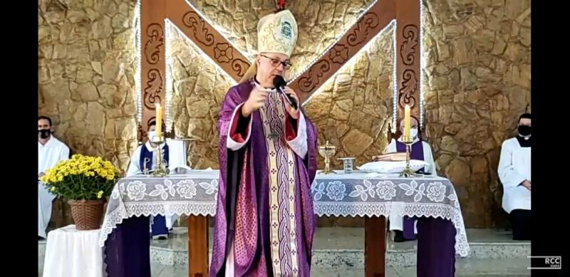 Em uma emocionante Celebração Eucarística, Dom Carlos, acompanhados do Pároco Padre João Valentim Voltarelli e o Vigário Padre Romano Gnesotto, ele se aproximou da comunidade, agradecendo todo o empenho que mesmo em meio a tempo de pandemia, continuaram animados e levando o Evangelho de Jesus Cristo a todos os espaços daquela belíssima cidade. Dom Carlos ainda, insistiu em motivar a todos a continuarem animados e perseverantes nessa missão.