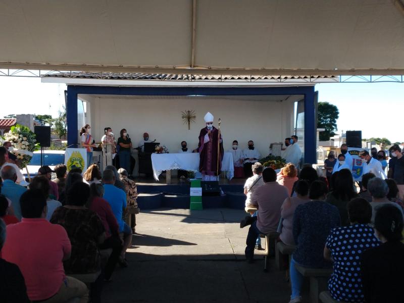 Dando início as celebrações na Diocese de Apucarana, Dom Carlos José de Oliveira, Bispo da Diocese de Apucarana, presidiu a primeira missa no Cemintério Municipal Cristo Rei, às 8h.