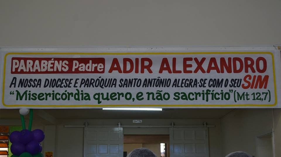 Hoje na Paróquia Santo Antônio de Pádua, pelas imposição das mãos do nosso Bispo Diocesano Dom Celso Antônio Marchioli, foi ordenado Presbítero o Pe. Adir Alexandro N. Marques, assumindo para o seu ministério o lema: "Misericórdia quero, e não sacrifício" (Mt 12,7). Seja bem vindo Pe Adir Alexandro, a Diocese de Apucarana te acolhe com muito amor e alegria.