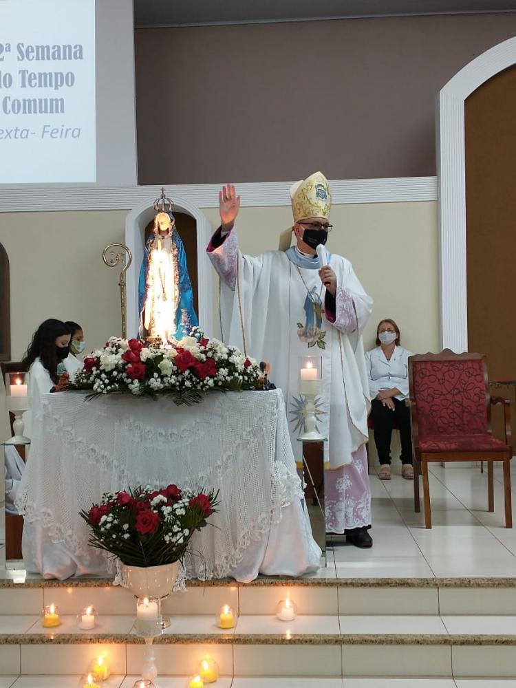 Nesta sexta-feira (13), Dom Carlos José de Oliveira, Bispo de Apucarana, rezou o terço e celebrou a Santa Missa, na Paróquia Nossa Senhora de Fátima de Arapongas, que todos os dias 13 de cada mês, comemora essa devoção.