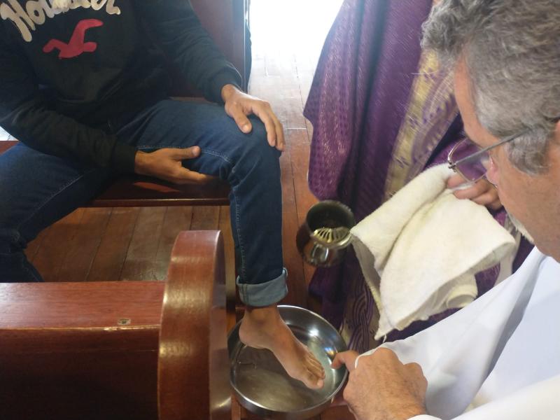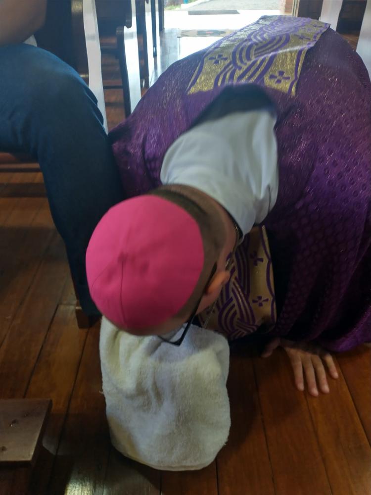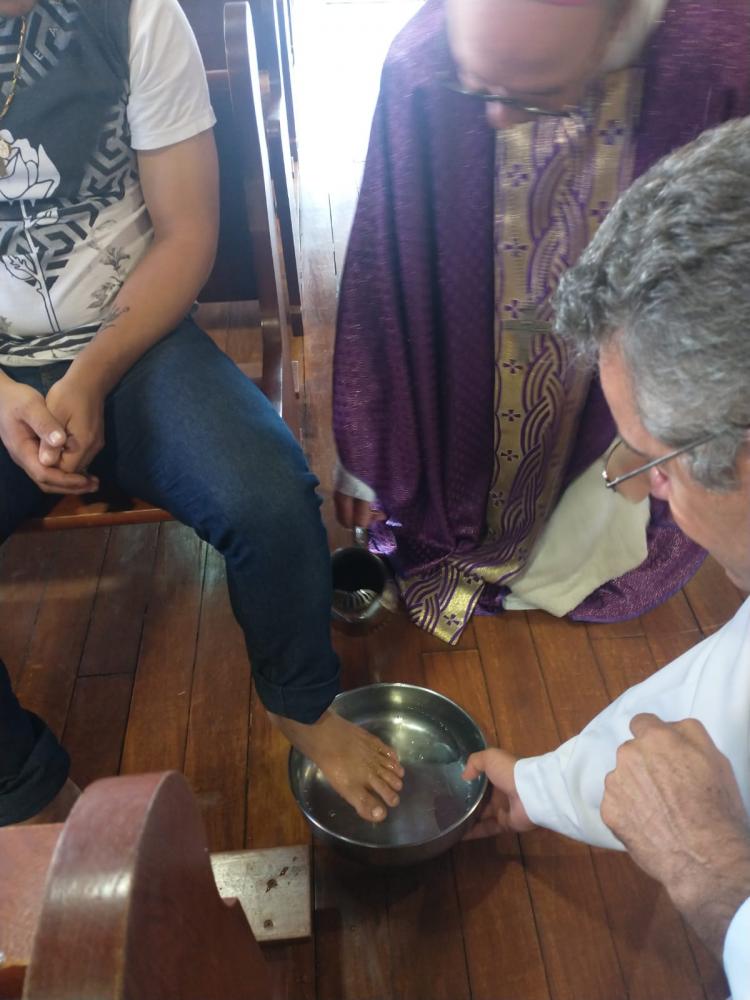 Aconteceu nessa manhã de quarta-feira, na Chácara do Cristma, a celebração de lava pés, presidida por Dom Carlos José. No evento participaram todos os moradores da chácara.