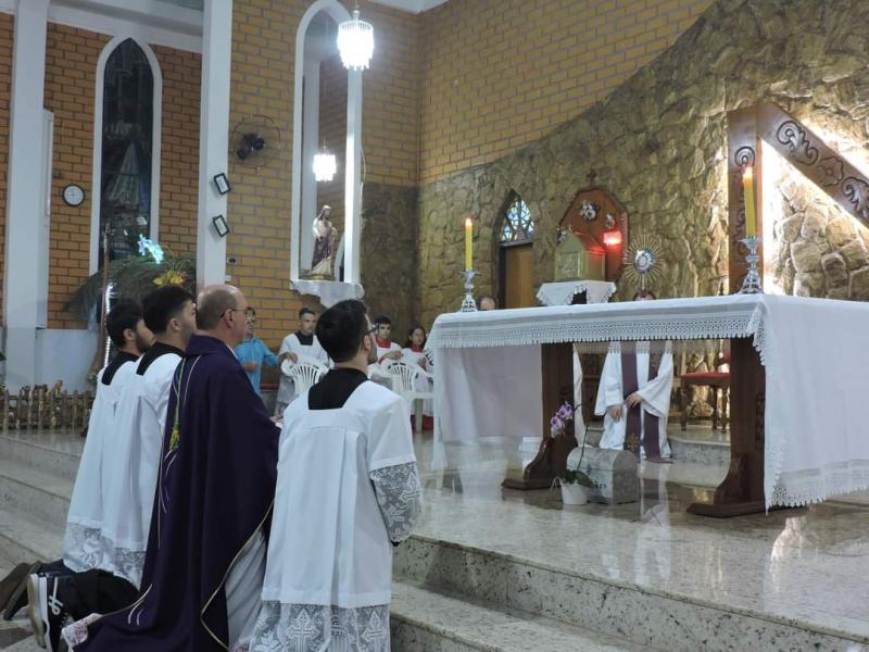 Nesta sexta-feira, 22 de dezembro, Dom Carlos José, Bispo Diocesano, celebrou a Santa Missa com o ato de reparação da Santíssima Eucaristia, que ocorreu em virtude do lamentável ato de profanação ocorrido na noite de 18/12, onde o tabernáculo de nossa Matriz foi violado e uma âmbula com a Sagrada Eucaristia foi furtada.