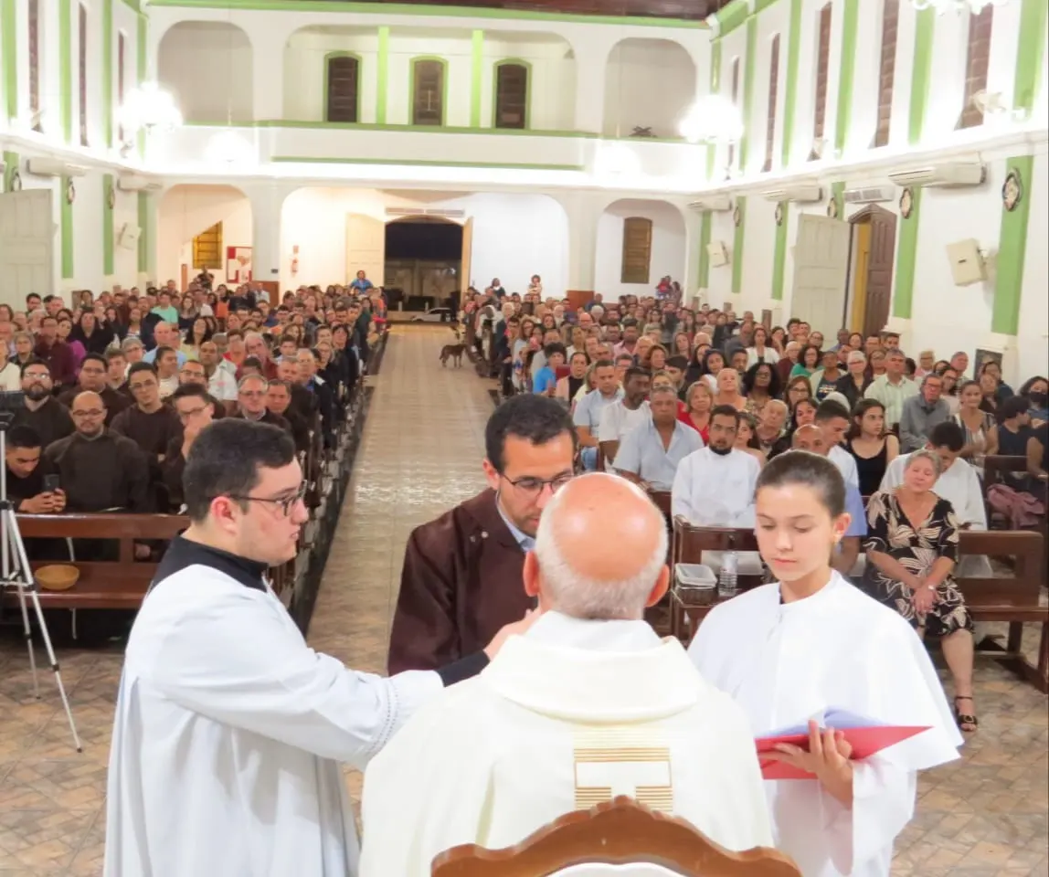 No último sábado, 15, a Paróquia São Sebastião de Guaraci recebeu a Profissão dos Votos Perpétuos do Frei Kater Vinicius @freikater filho do casal, diácono Felisberto e Neusa.