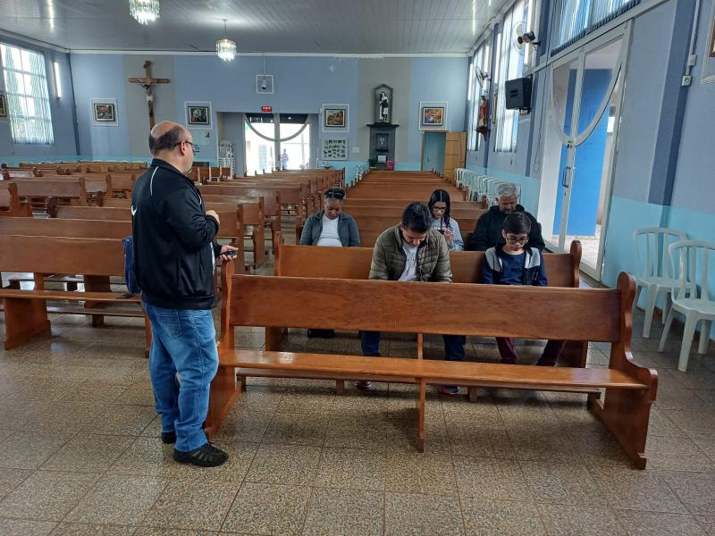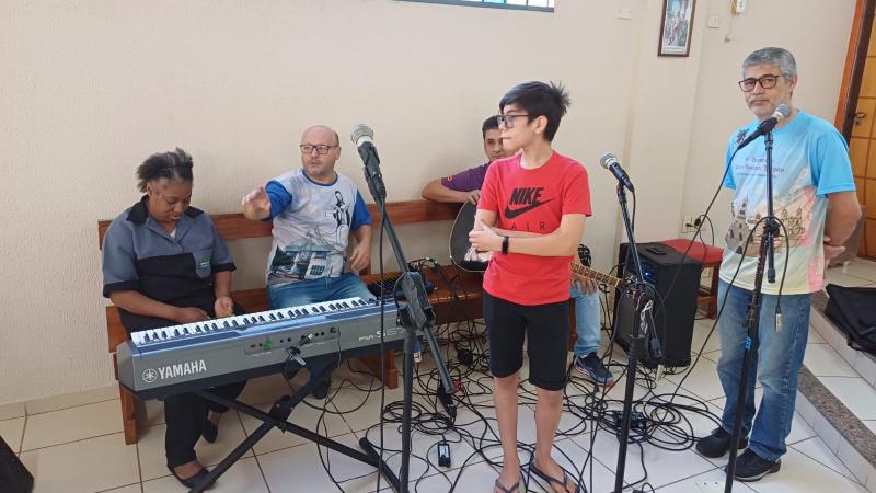 A iniciativa partiu do paroquiano Miguel, que coordena o coral Santa Dulce da paróquia, toca teclado nas missas e faz faculdade de Rede de Computadores, além de ser professor de artes.