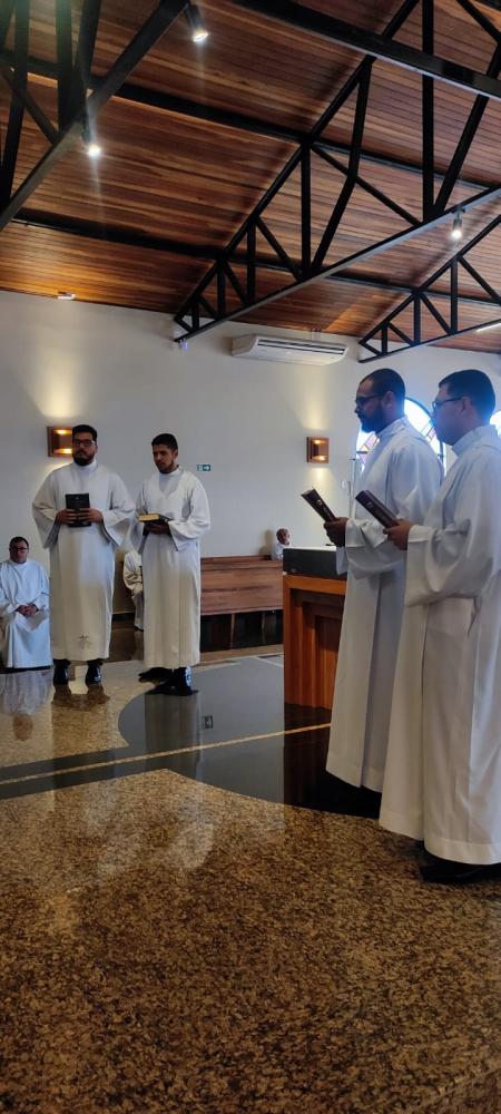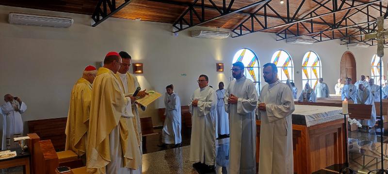 Durante a missa de encerramento do retiro anual dos presbíteros, em Umuarama, os seminaristas do curso de teologia foram admitidos às ordens sacras, ministério do leitorado e acolitado.