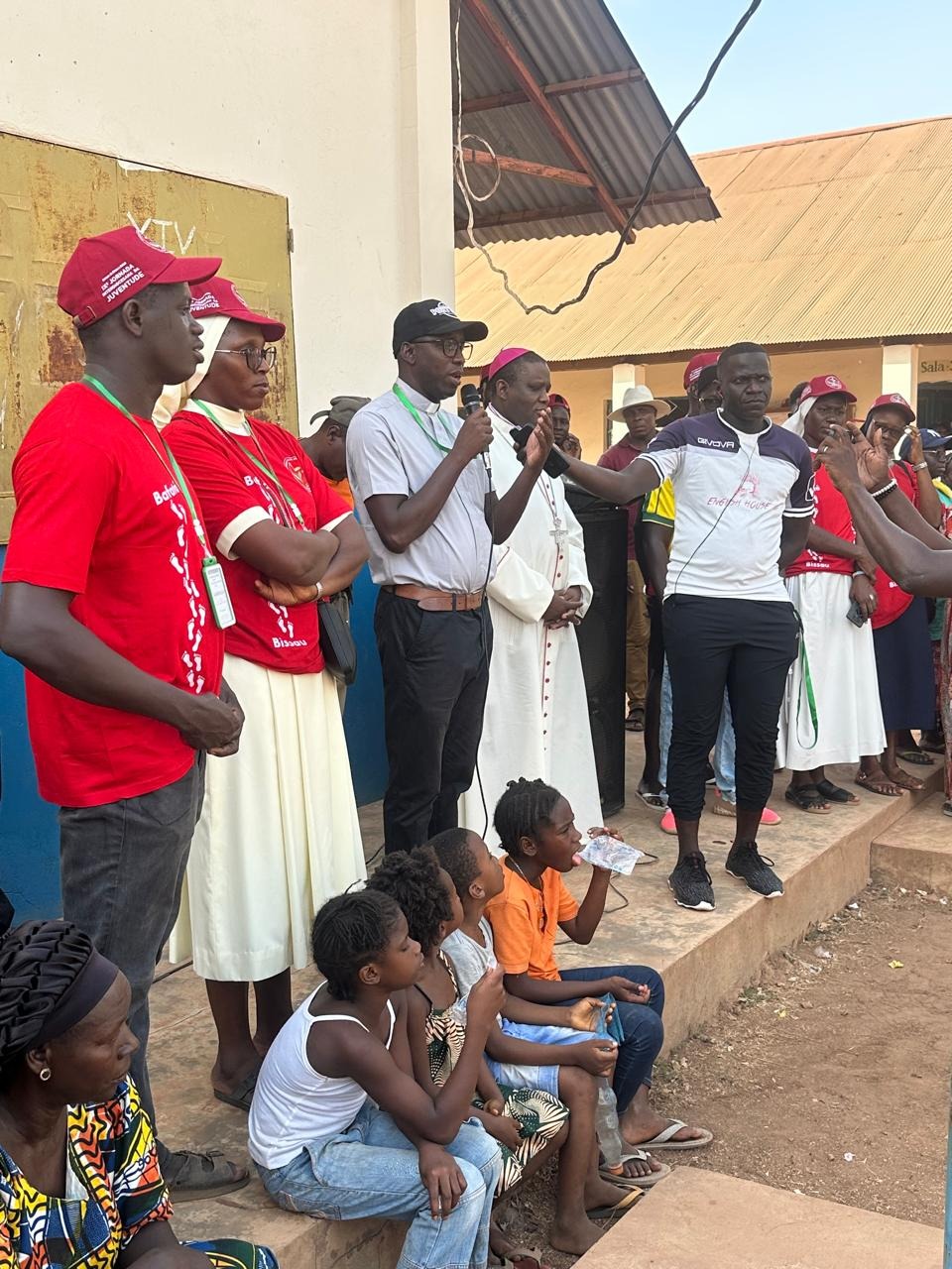 Abertura das celebrações do Jubileu de Prata da Diocese de Bafatá, com acolhida e benção de Dom Victor, aos jovens e as famílias que vieram de diversas regiões da diocese para essa jornada.