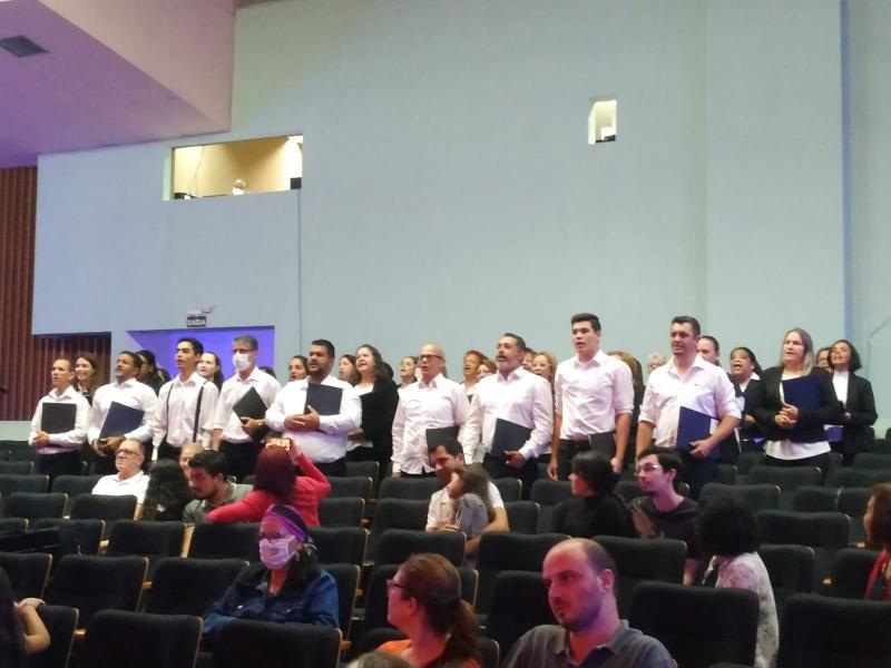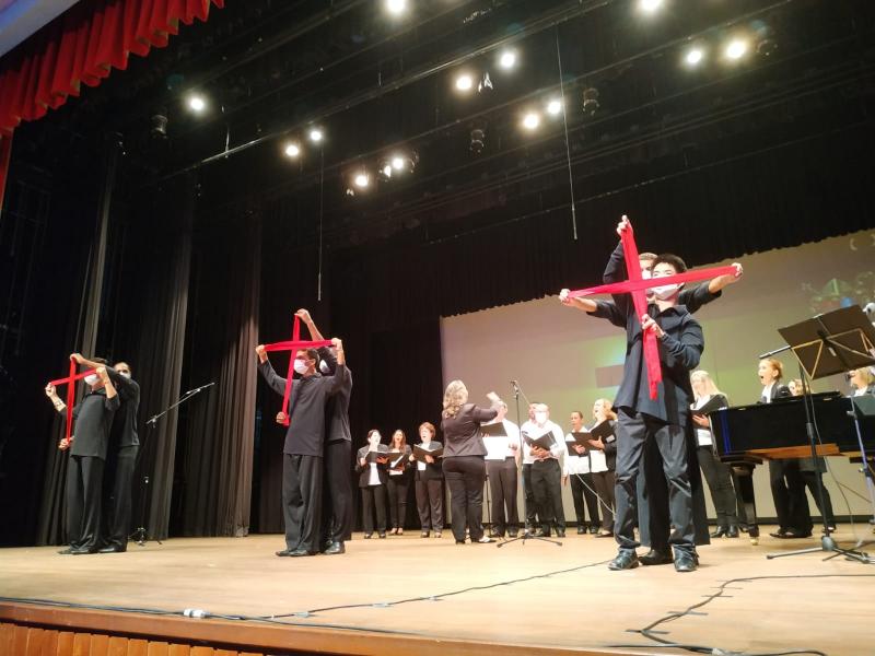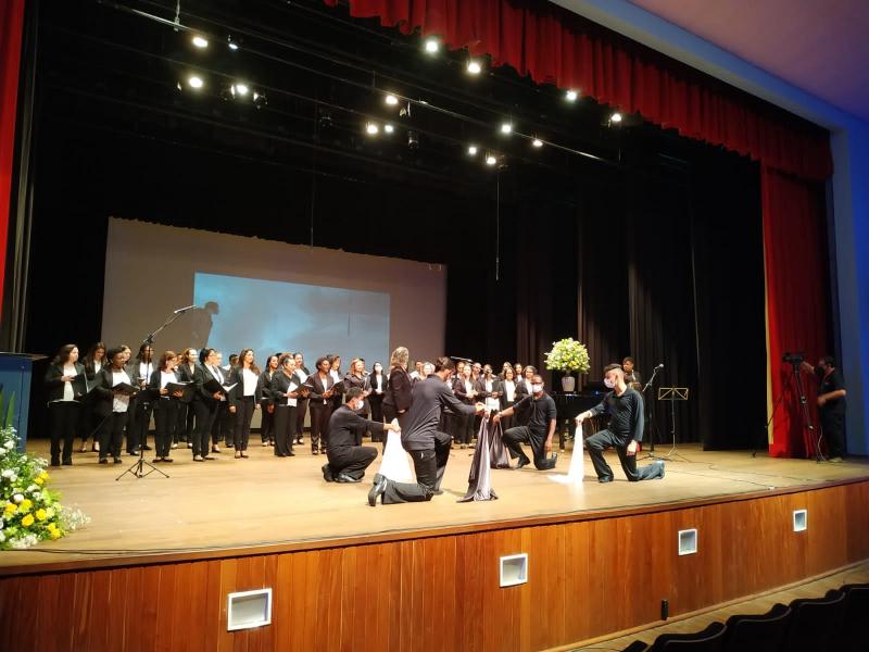 Aconteceu em Apucarana, na última sexta-feira (29/04), mais uma edição do concerto Cantate Domino onde se apresentaram o Coral Nossa Senhora Aparecida (mais antigo do município) e o Coro Diocesano de Apucarana. O evento contou, também, com a participação de adolescentes e jovens da educação especial que abrilhantaram a noite com apresentações artísticas e danças. Foram executadas canções litúrgicas próprias do período pascal, assim como músicas populares inspiradas no tema. Gratidão aos envolvidos nesta bela iniciativa, de maneira especial, à maestrina Josiclécia Oliveira pelo empenho e dedicação.